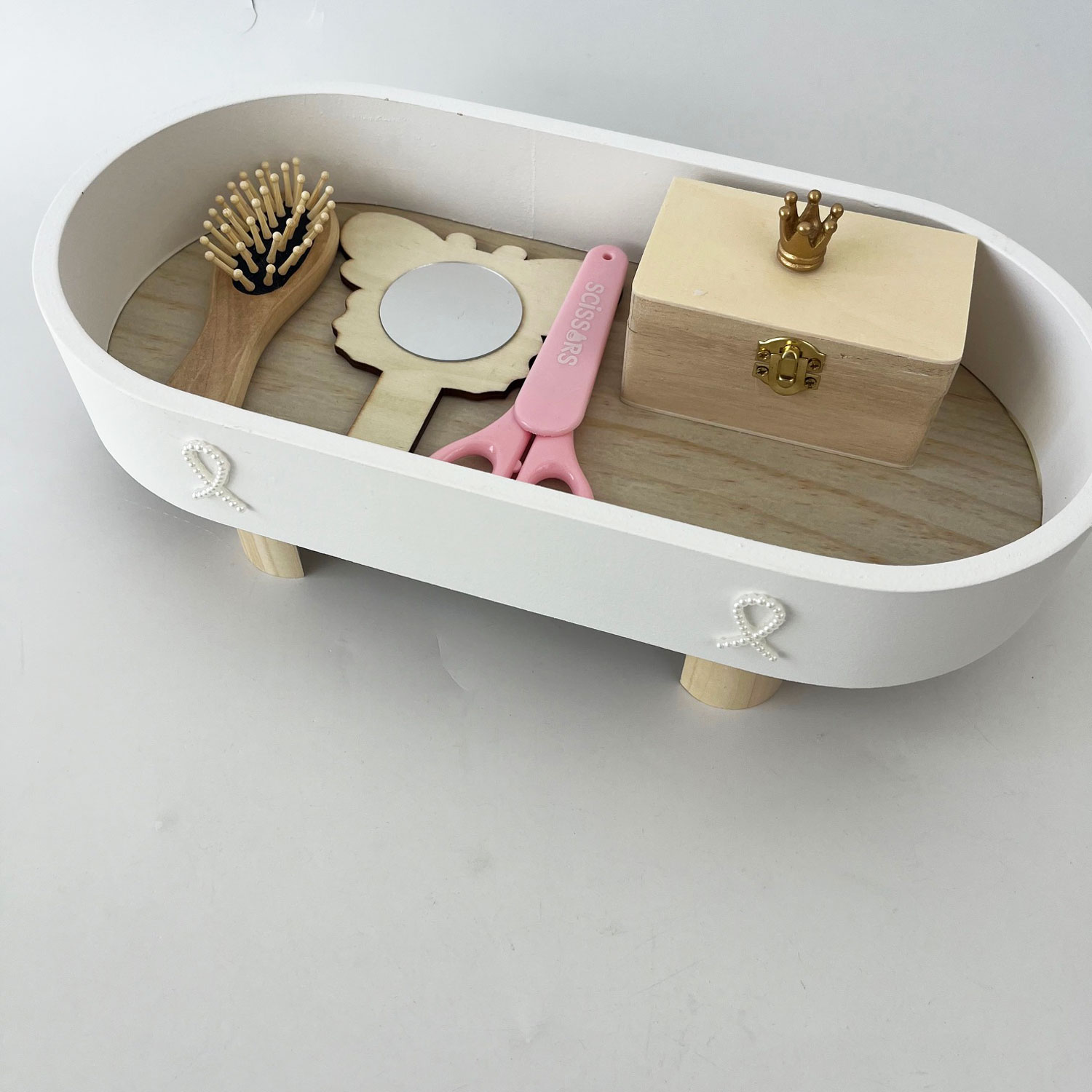 Be the first to review “Tăviță cu piciorușe pentru tăiere moț, model Prințesă”