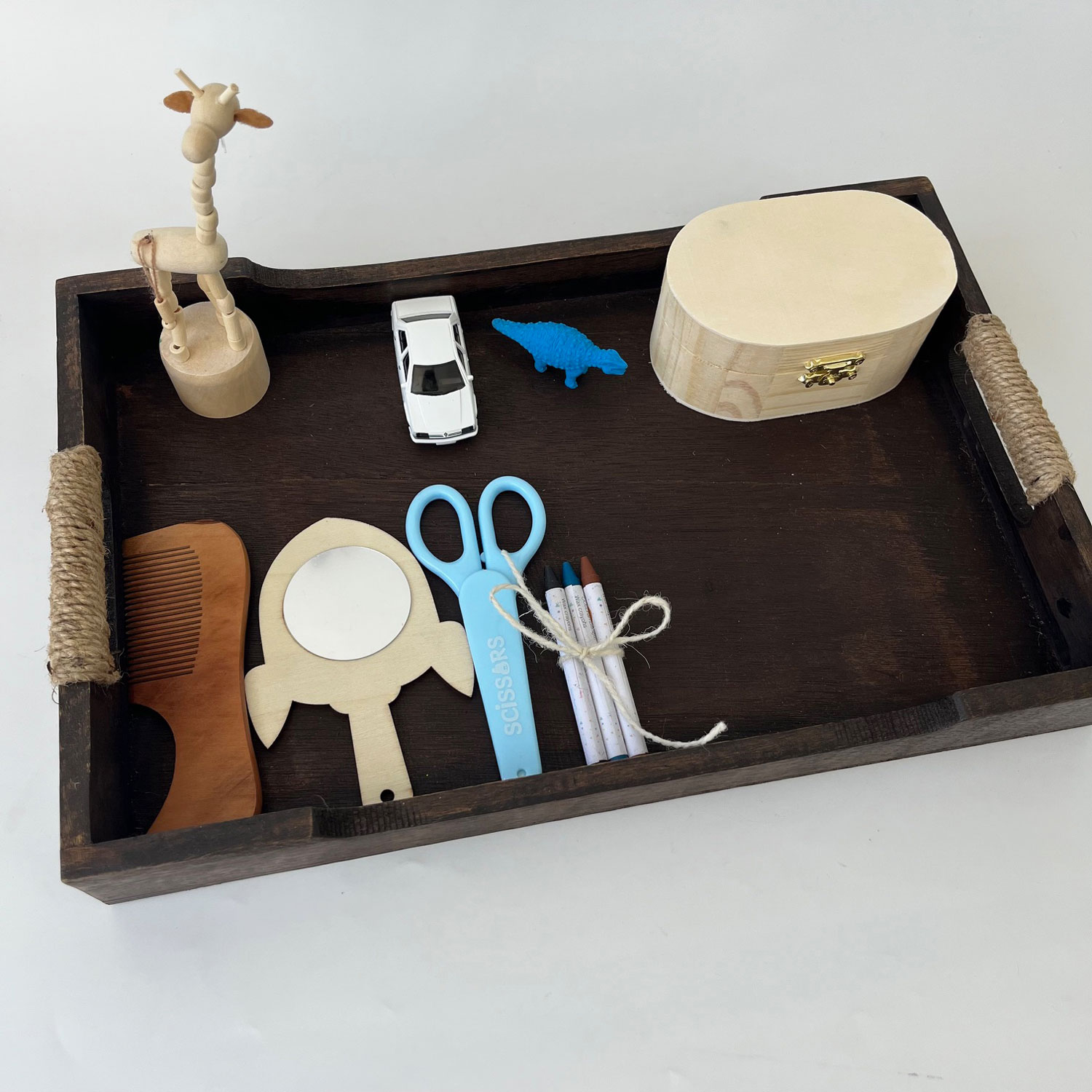 Tăviță pentru tăierea moțului, la aniversarea de 1 an a copilașului, decorată și pregătită cu elementele necesare, la care se adaugă preferințele părinților sau ale nașilor. Aceasta va rămâne o amintire prețioasa de-a lungul timpului pentur toți membrii familiei.