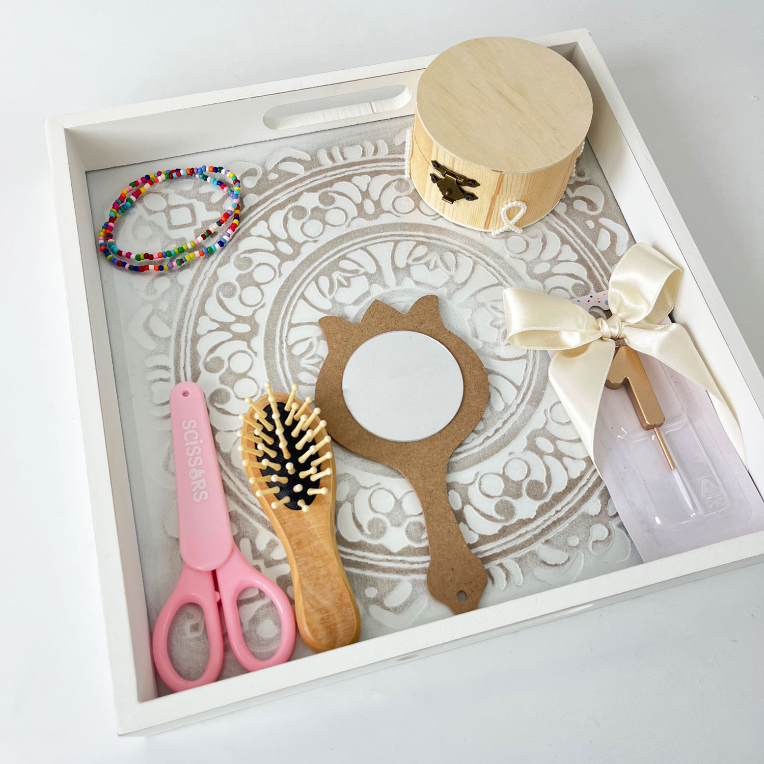 Tăviță pentru tăierea moțului, la aniversarea de 1 an a copilașului, decorată și pregătită cu elementele necesare, la care se adaugă preferințele părinților sau ale nașilor. Aceasta va rămâne o amintire prețioasa de-a lungul timpului pentur toți membrii familiei.