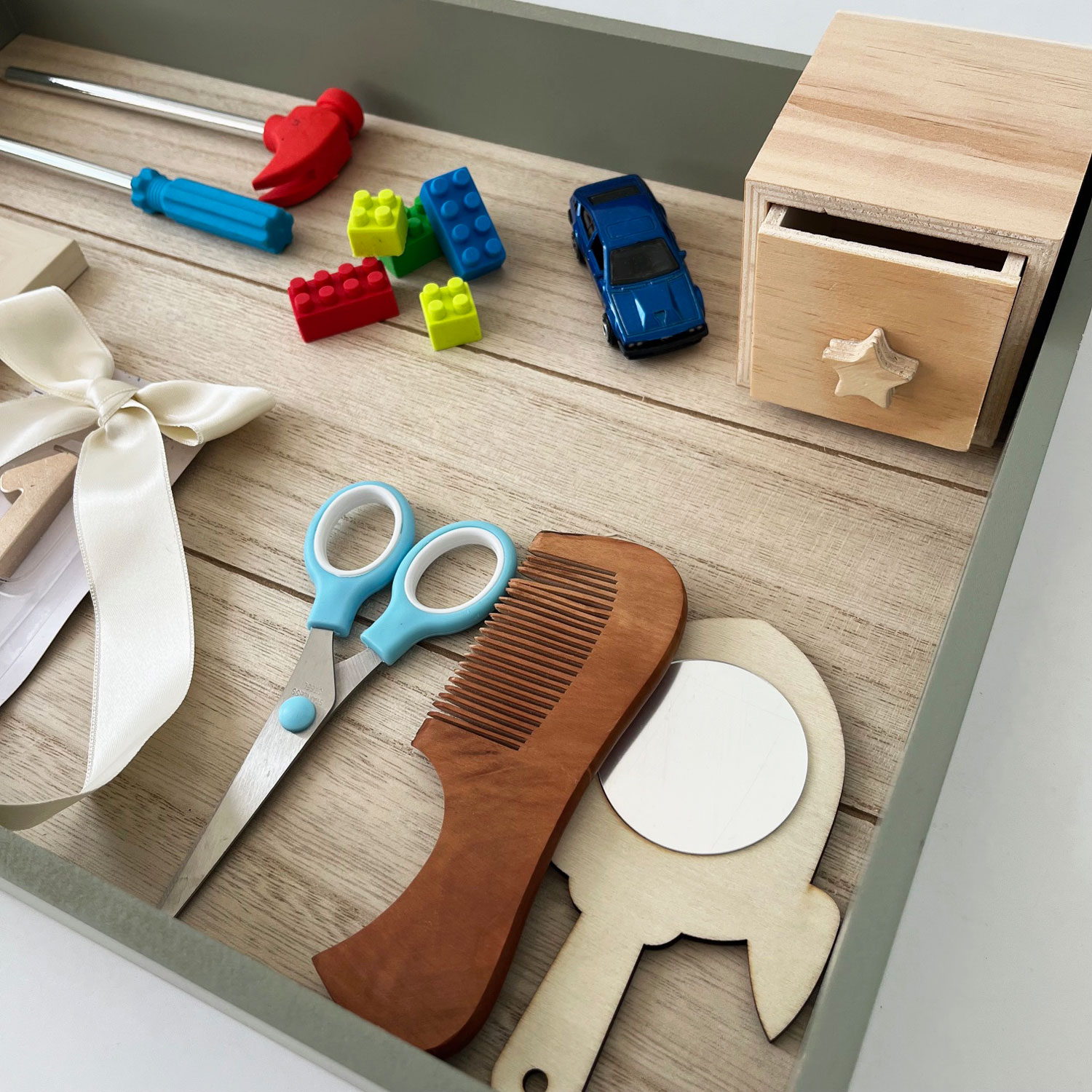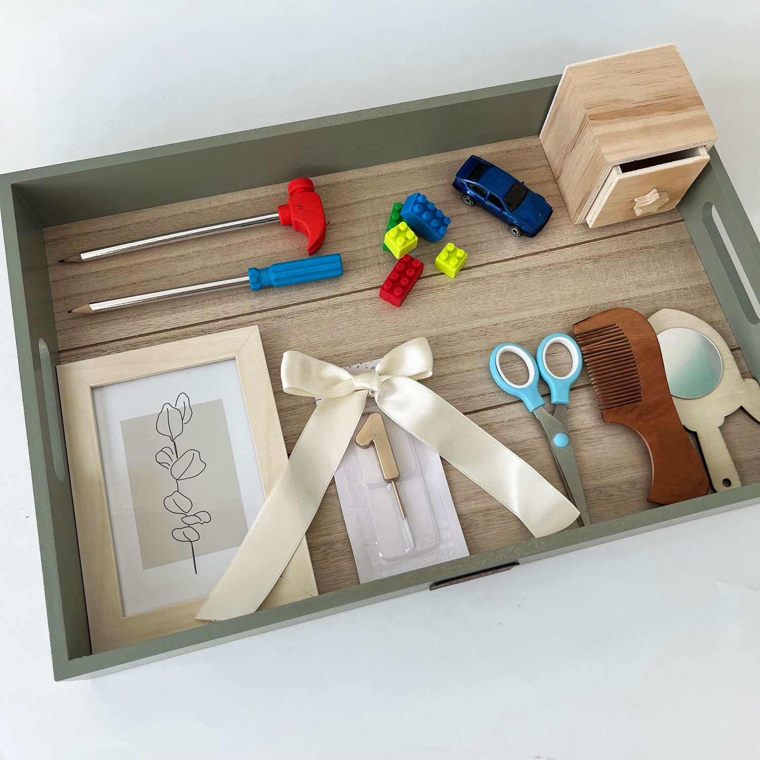 Tăviță pentru tăierea moțului, la aniversarea de 1 an a copilașului, decorată și pregătită cu elementele necesare, la care se adaugă preferințele părinților sau ale nașilor. Aceasta va rămâne o amintire prețioasa de-a lungul timpului pentur toți membrii familiei.
